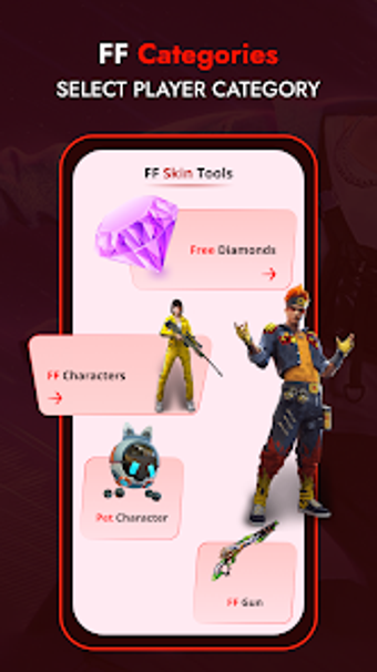사용자들은 이 앱을 통해 희귀한 엘리트 패스 및 스킨 모드 번들뿐만 아니라 엘리트 패스 번들, 이모티콘, 애완동물, 캐릭터 및 차량 스킨과 같은 다양한 인게임 아이템에 쉽게 접근할 수 있습니다. 매일 다이아몬드 스킨 도구를 얻는 것은 팬 제작 애플리케이션이며 공식 게임 개발사와는 관련이 없음을 주의해야 합니다.